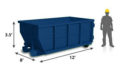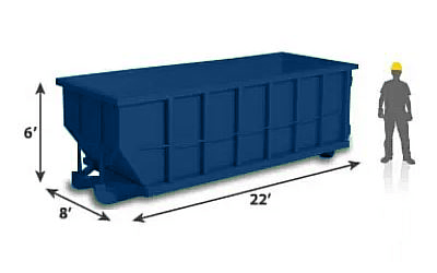 We’ve provided the measurements of our hireable roll-offs below. We have 12-yard and 15-yard sizes, too. They just aren’t shown in the pictures below. Please call to book your dumpster.